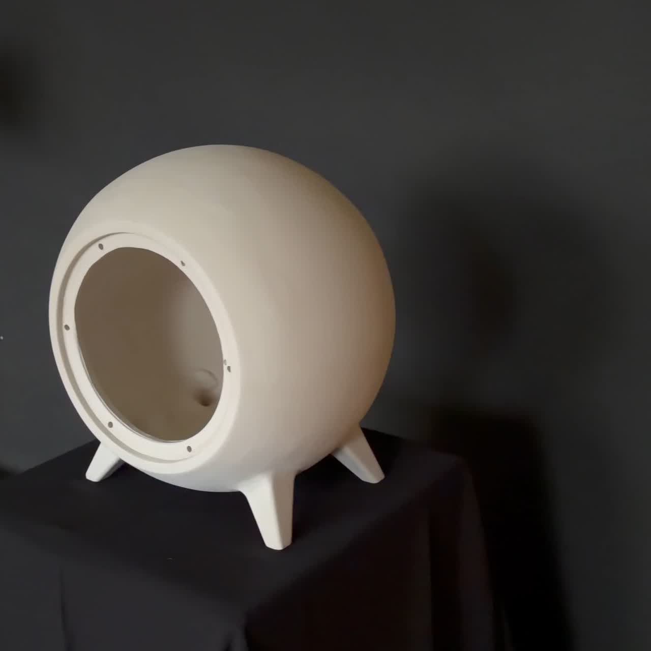 Matrix model met gipsen overmal voor bol speaker, maaktijd ongeveer 4 weken, proces: 3d printen van matrix en wanden, gips.